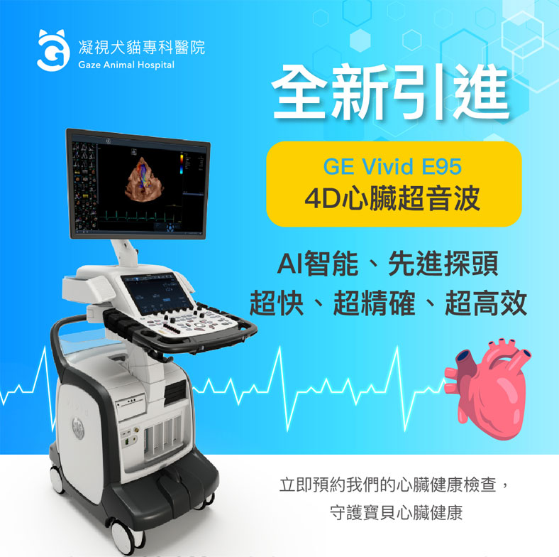 我們引進 美國奇異公司 GE Vivid™ E95 4D心臟超音波,是一款高端的超音波波診斷儀,擁有優異解析度和圖像品質及人性化操作介面,除了可執行4D動態立體成像,借助AI人工智能自動測量自動辨識的強大運算能力,搭配先進的探頭,除經胸超音波TTE外,還有經食物超音波探頭 TEE,提供更直觀且全面的心臟結構及運動功能的評估,這些數值、影像對於心臟手術的術前評估至關重要,更可協助早期病情的追蹤並對心臟疾病給予更精確的判斷與治療喔!