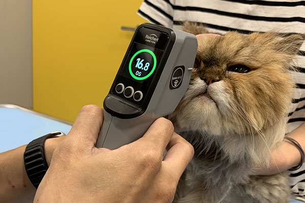 凝視的眼科門診室特別設計為可提供亮室與暗室兩種需求,讓眼科檢查可以在標準環境下進行,使檢查判讀更為精準。我們也備有各種的眼科設備,包含Kowa裂隙燈、TonoVera動物專用眼壓計、Heine直接式檢眼鏡、Neitz間接式檢眼鏡(眼底鏡)與放大鏡片、紅藍光視網膜功能偵測儀、電動角膜清創鑽石研磨器、睫毛鑷、淚液產量試條紙、角膜螢光染色試紙、各類眼藥水等,提供毛小孩詳細的眼科學檢查與完整的治療。